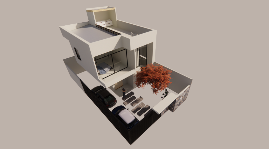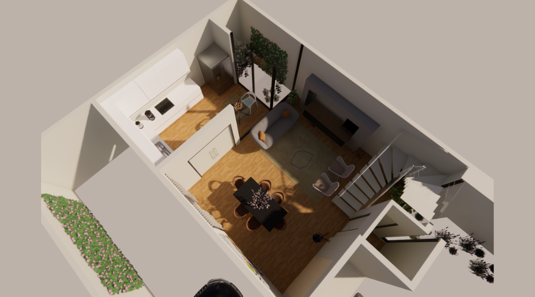 El proyecto, desarrollado en una superficie menor a 140 m², incorpora 2 dormitorios, 3 baños, sala de estudio, estar, comedor y logia, optimizando cada espacio para mejorar el confort, la eficiencia y la calidad del habitar.